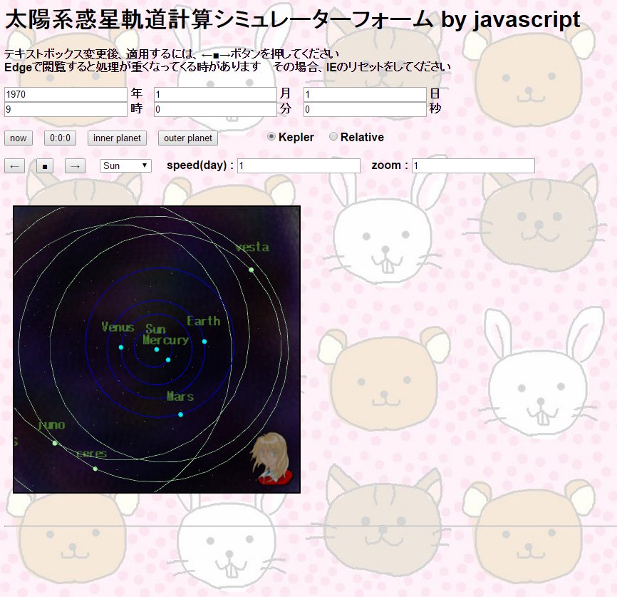 太陽系惑星軌道計算シミュレーターフォーム by javascript
